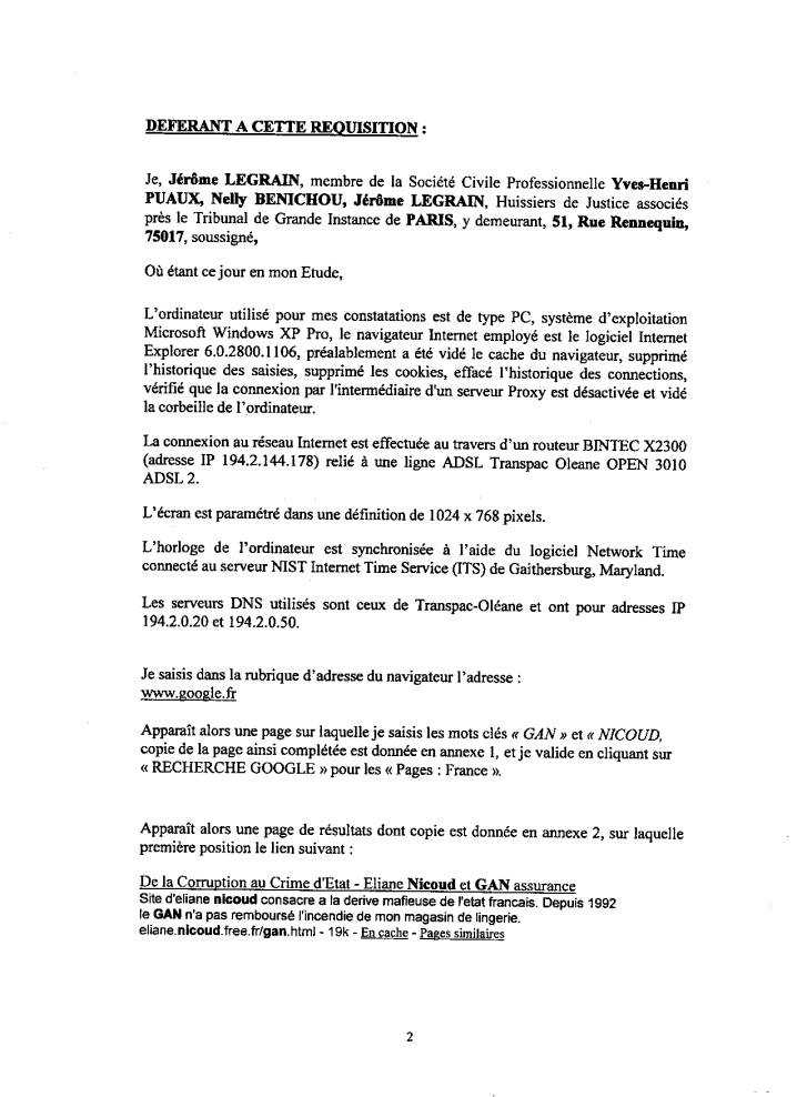 N° 97 - NICOUD Eliane et huissiers PARIS Jérôme LEGRAIN, Yves-Henri PUAUX, Nelly BENICHOU |