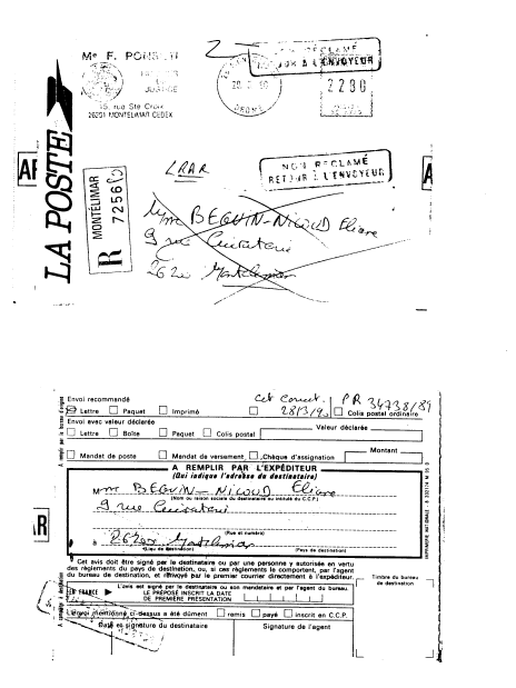 | La POSTE / Recommandé AR. | Pièce n° 8 | |