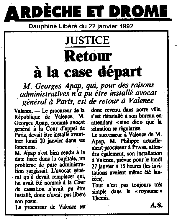 Voir aussi : 10 septembre 1992 ma PLAINTE contre le Procureur Georges APAP