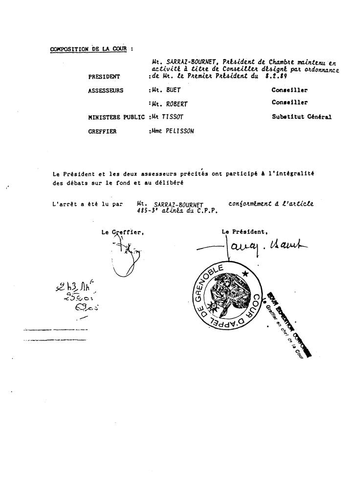 | N° 5 - JUSTICE - Président SARRAZ-BOURNET Jugement 25-01-1990 Cour d'Appel de Grenoble |