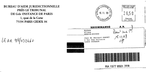 | Rejet N° 1 de la demande d’Aide Juridictionnelle 09 novembre 1998 |