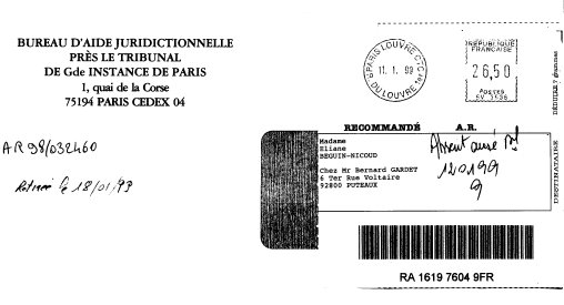 Rejet N° 2 de la demande d’Aide Juridictionnelle 04 janvier 1999 | bas |